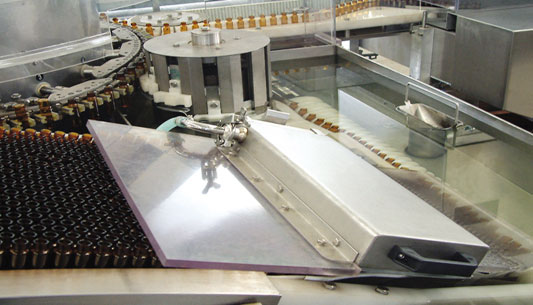 該線由QCK80型立式超聲波洗瓶機、ASMZ620/42型遠紅外滅菌干燥機、DGF16/24型口服液灌裝軋蓋機三臺單機組成,分為清洗、干燥滅菌和灌裝封口三個工作區(qū),全線可聯(lián)動生產(chǎn),也可單機使用??赏瓿闪芩?、超聲波清洗、機械手夾瓶、翻轉(zhuǎn)、沖水、沖氣、預(yù)熱、烘干滅菌、冷卻、灌裝、理蓋、戴蓋、軋蓋等工序。